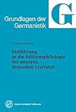 Einführung in die Editionsphilologie der neueren deutschen Literatur (Grundlagen der Germ By Klaus Kanzog PDF